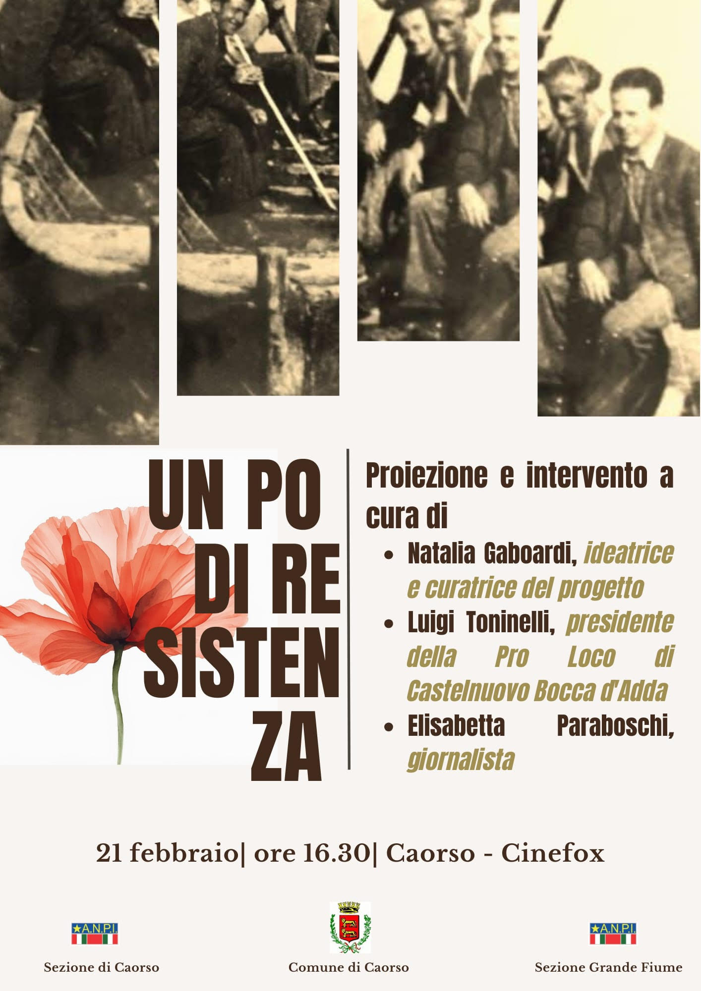 Un Po di Resistenza – Proiezione e intervento 15 Febbraio 202615 Febbraio 2026Senza categoria Caorso 21 Febbraio 2026 ore 16:30 Cinefox di Caorso